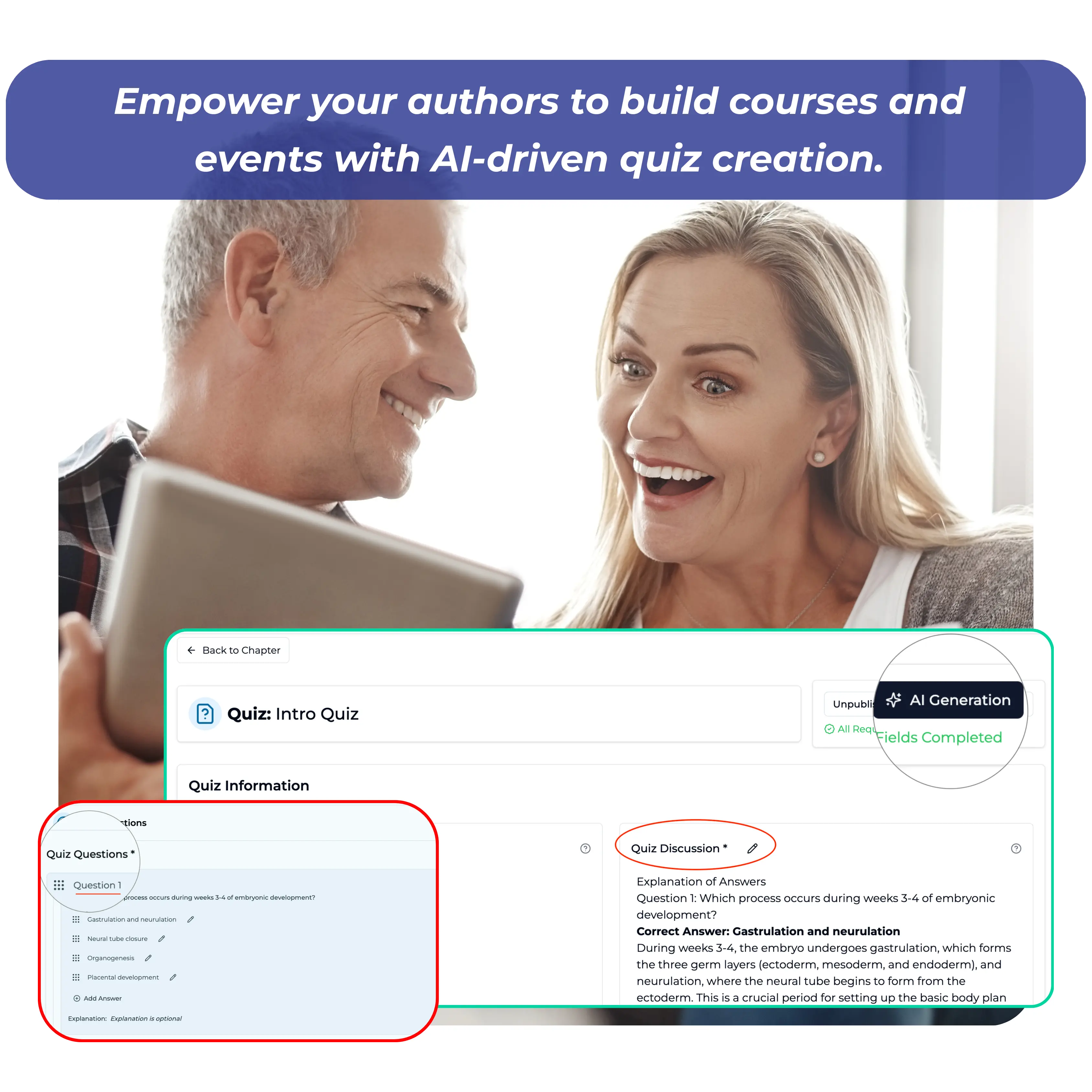Build compliant courses, events, and webinars with our Drag-and-Drop Editor, Rich Text Editor, and AI Quiz Creator.