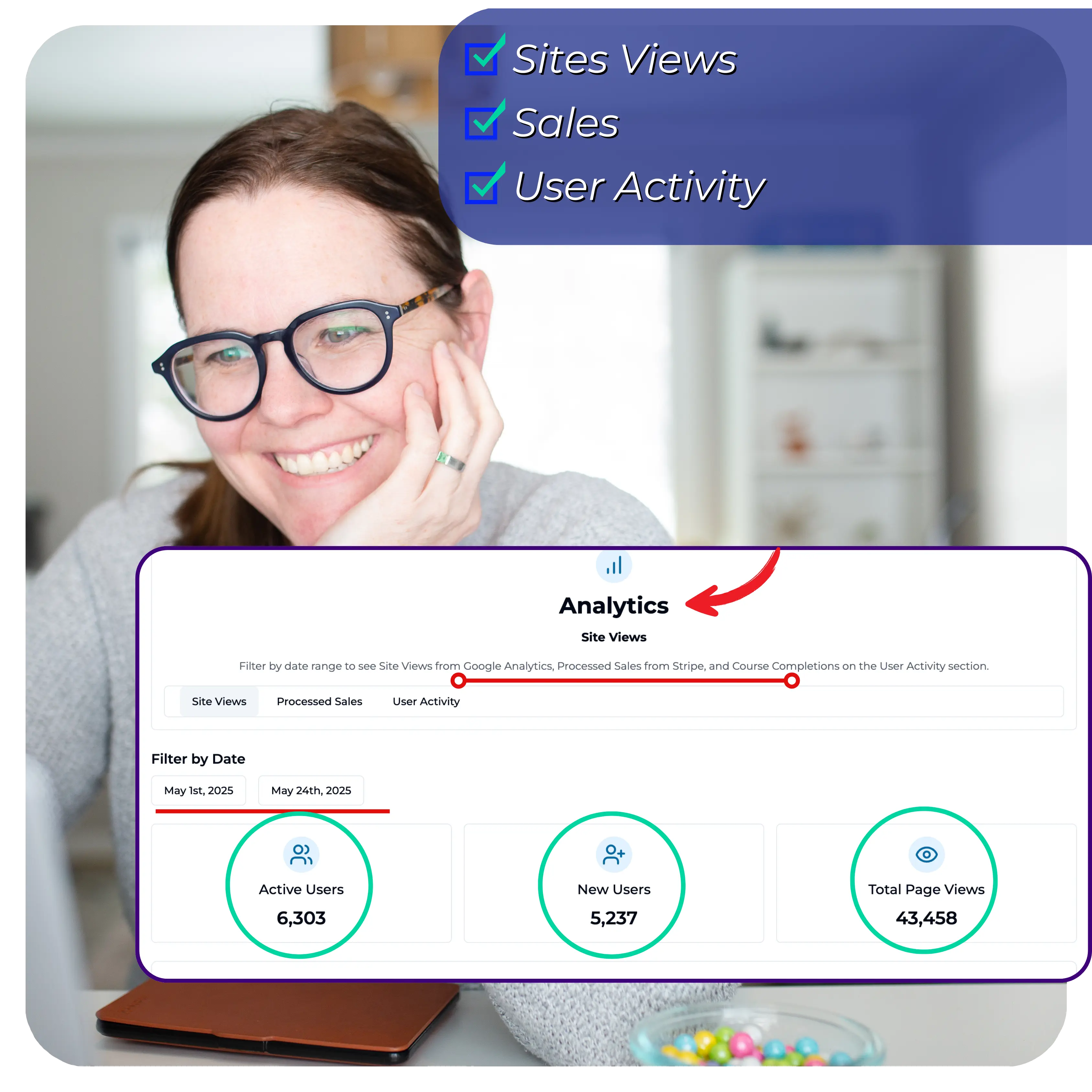 Track site views, learner activity, and sales to make smarter growth decisions.